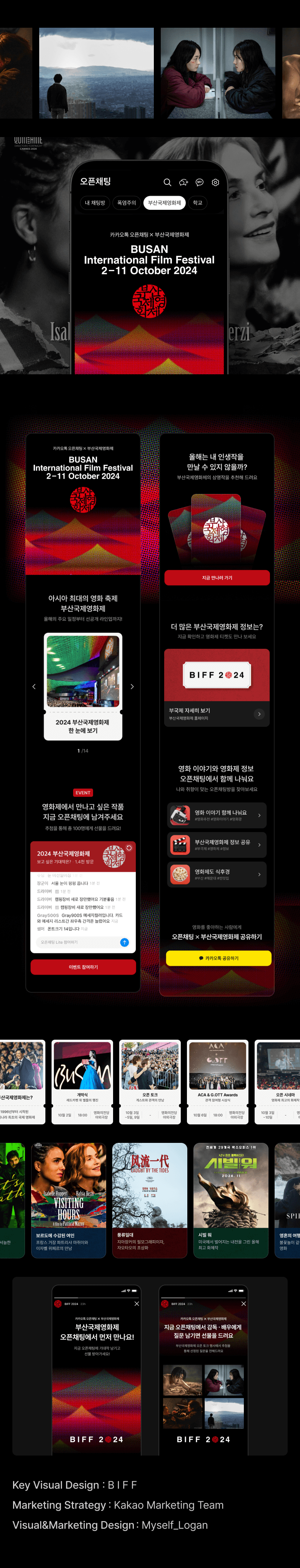 I designed a collaboration event page between Open Chat and the Busan International Film Festival (BIFF). To promote the festival, we ran both online and offline events. During the process, I created design variations based on BIFF’s official graphics and applied them across various assets.
